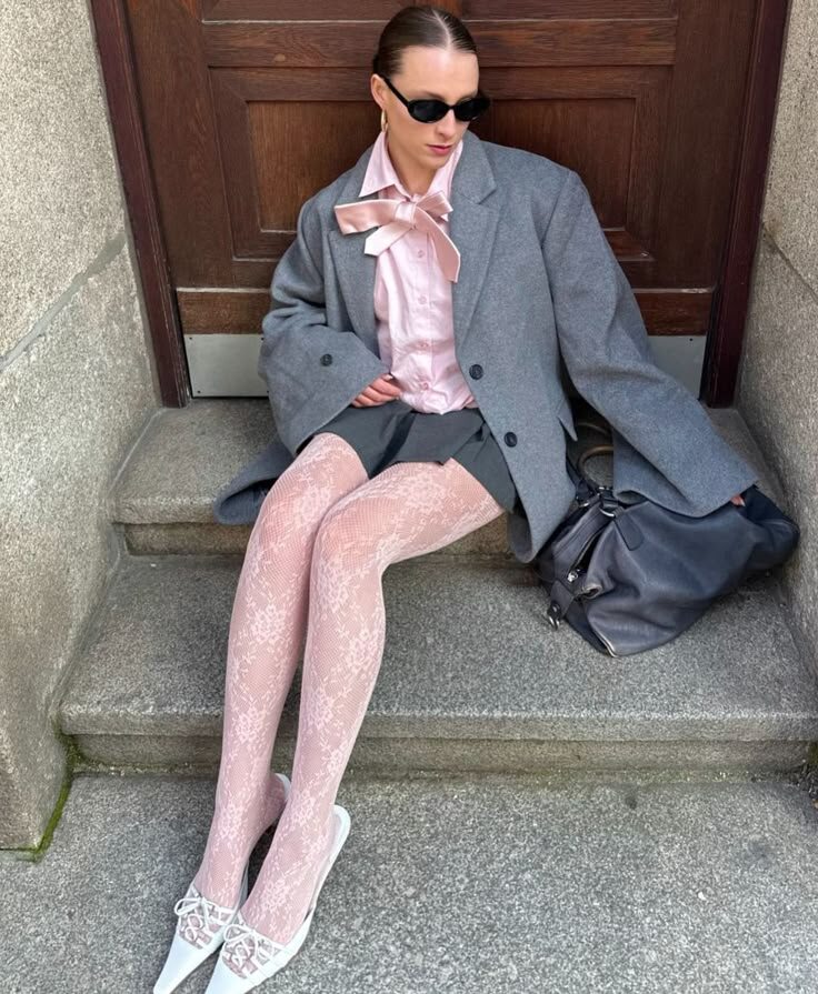 Чулки и колготки можно успешно сочетать не только с юбками и платьями, но и с брюками или шортами. Например, легкие шорты из денима прекрасно смотрятся с яркими колготками, создавая непринужденный и стильный образ для весенних прогулок. Также можно надеть брюки с высокой талией и комбинировать их с чулками, чтобы подчеркнуть талию и визуально удлинить ноги.