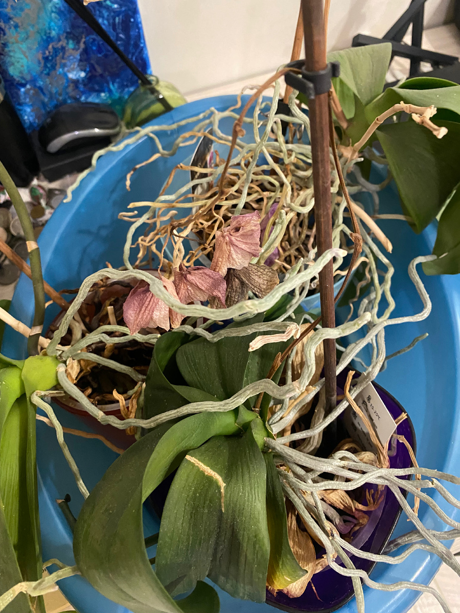 Ей надо чтобы они сами росли и поливались. Забрала Орхидеи, вижу что скоро погибнут, надо пересадить в новый грунт и горшки, ну и верну , но может быть не все, а парочку ))) ещё не известно как они поведут после пересадки. Заметила что чем больше ухаживаешь за цветами, тем они больше капризничают .