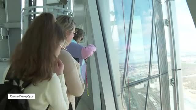 Увидеть пейзажи Северной столицы с 400-метровой высоты теперь еще проще! Экскурсии на смотровую площадку «Лахта Центра» стали проходить чаще. Общественные пространства небоскреба доступны для посетителей с 7 февраля. Сотрудники предупреждают, что покупать билеты на экскурсии можно только на официальном сайте во избежание мошенничества. Корреспонденту ЛенТВ24 Виталине Шляховой посчастливилось побывать наверху. Не каждая птица заберется на такую высоту, а мы смогли! 365 метров над землей. На такой высоте расположилась смотровая площадка «Лахта Центра». Поднимаясь сюда, мы преодолели два слоя облаков. Они формируются на 30-м и 70-м этажах, а мы на 86-м. К слову, это последний этаж стеклянного фасада. Над ним уже находится неостекленная часть шпиля. Она около 100 метров. Представляет собой многоуровневую стальную конструкцию, сквозь которую проходит ветер. То есть там такая уже улица уже. Ну, и снаружи этот шпиль затянут специальной сеткой.Татьяна Просычева, старший экскурсовод «Лахта Цент
