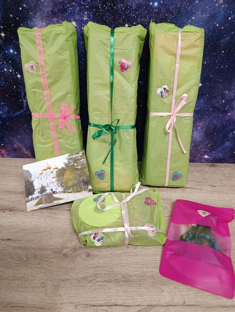 Добрый день! Вчера я получила первый подарок с обмена ко дню кукольника (который завтра будет, 21 марта). Вот что ко мне приехало от Олеси из Ярославля. Все элементы подарка красиво упакованы. В розовом пакетике набор цветов и украшений. Во втором свертке сладости, блокнотик и лента "хендмейд". Куколки, каждая в своей коробочке и в своем свертке. Все из серии про фей. У них статичные тела и молдированный "купальник", но приятный и необычный макияж. А такие подарки я собирала сама в этот раз. Выселила силиконового малыша, полученного на хеллоуин, снабдив мебелью своего изготовления: За него я и получила трех фей. Второй подарок по системе "из закромов". Был обменян на одежду: Подарок "охота на фей". Был обменян на русалку. Оставшиеся два подарка приедут позже. Как вам мой обмен в этот раз?