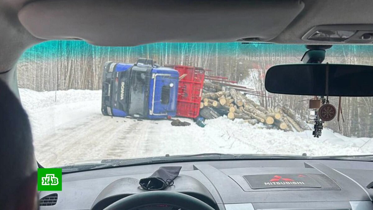 Лесовоз под Братском завалил бревнами легковушку, пассажир чудом остался жив