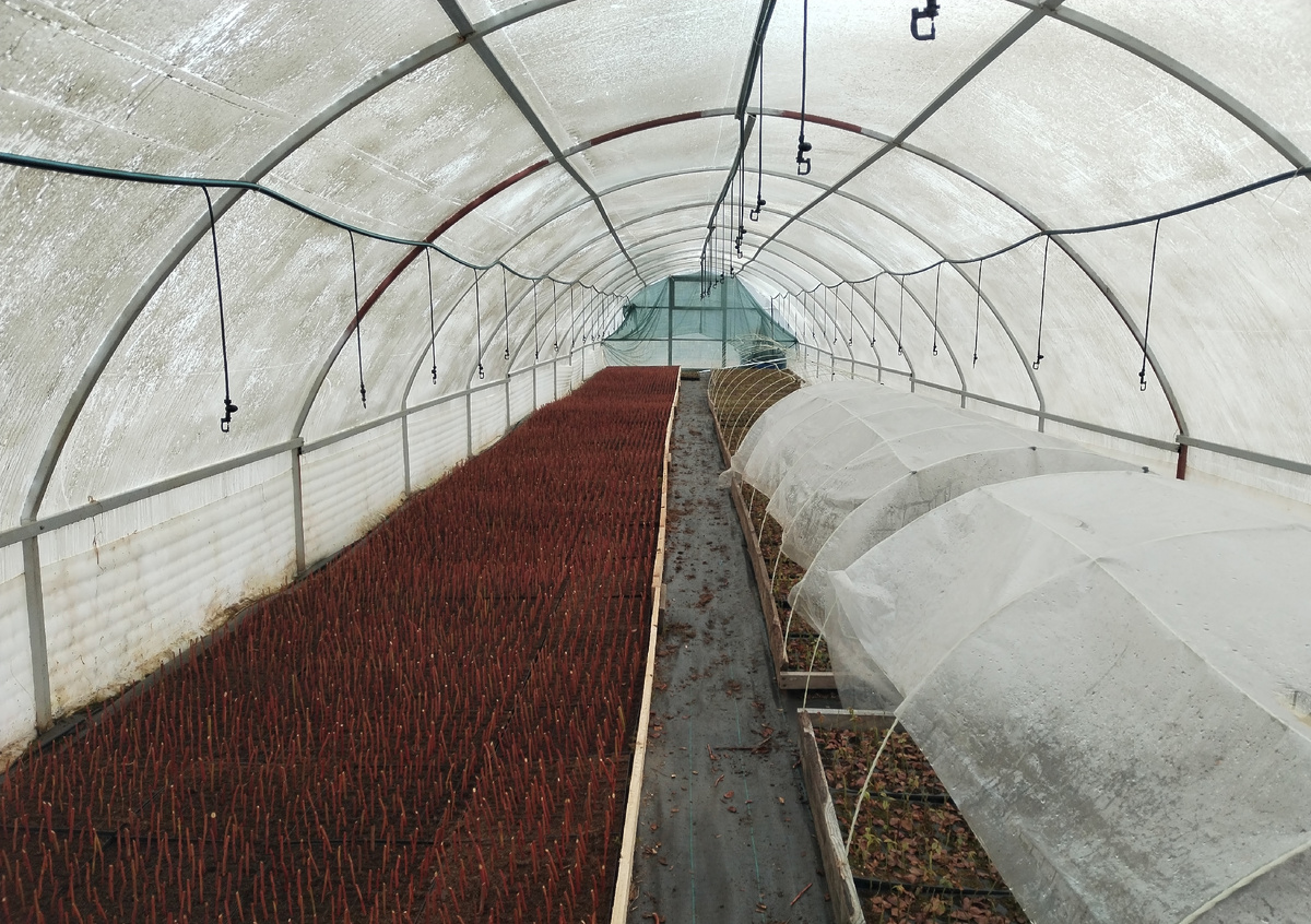 Заканчиваем черенковать голубику. За восемь часов поставила 10000 заранее подготовленных черенков. В прошлом году за семь рабочих часов выходило 4500 штук, а в этом более, чем в два раза. Откуда такая прыть? Не окунала черенки в укоренитель, поэтому скорость увеличилась. Ещё потому, что большая часть черенков была нарезана и связана пучками по количеству ячеек в кассете. Почему отказались от укоренителя? В разные годы мы использовали то дорогой Ризопон 2%, то простой укоренитель. Пришла к выводу, что при неблагоприятных условиях укоренители не спасут ситуацию. Ровно наоборот: при хороших условиях растение укорениться без дополнительных премудростей. Такова его природа. Что важно? Хороший грунт с необходимым для культуры PH и оптимальная влажность. В прошлом году при летнем черенковании мы попробовали укоренять голубику без укоренителей и у нас всё получилось. Весеннее черенкование немного сложнее, так как черенки одревесневшие - кора имеют более твёрдую структуру. Для того чтобы п