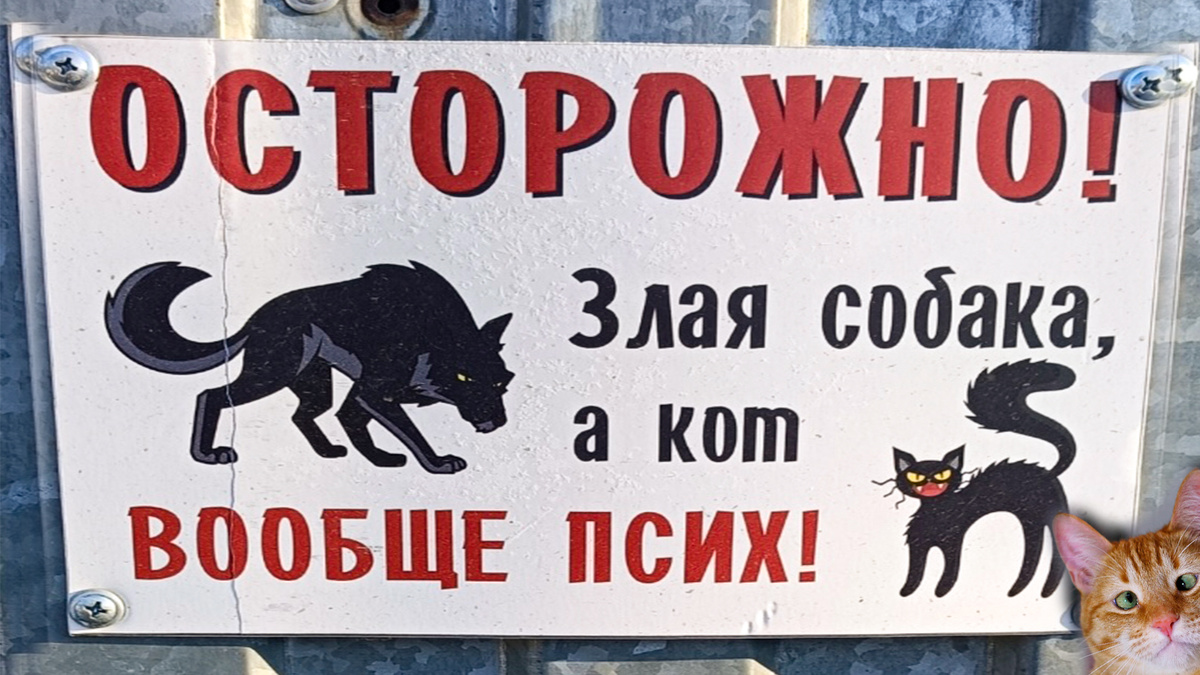 "Осторожно! Злая собака, а кот вообще псих", - гласил плакат. Бывает, что реально кошку стоит бояться, а пёс только зализать может