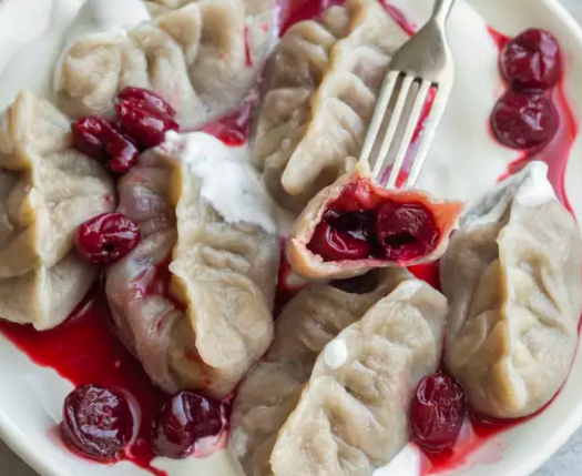 Ингредиенты: Тесто: - 500 г муки - 1 стакан воды - щепотка соли - 2-3 ст. л. растительного масла Начинка: - 500 г вишни - 200 г сахара - 2-3 ст. л. муки Приготовление: Смешайте муку, теплую воду, соль и растительное масло, чтобы получилось плотное тесто. Положите его в полиэтиленовый пакет и оставьте отдыхать примерно на час. После этого раскатайте тесто в тонкий лист толщиной около 2 мм и нарежьте его на маленькие квадраты. Положите в центр каждого квадрата начинку из вишен без косточек, смешанных с сахаром и мукой. Соедините противоположные углы, скрепите их и варите в кипящей подсоленной воде до тех пор, пока они не поднимутся на поверхность. Начинку из вишен лучше подготовить заранее, чтобы вишня успела пустить сок. Слейте сок в отдельную емкость и используйте его позже, чтобы полить готовые вареники. Таким же образом можно приготовить вареники с картофельным пюре и луком, с капустой — оба варианта получаются очень вкусными, особенно если их обжарить после варки. Вы можете использо