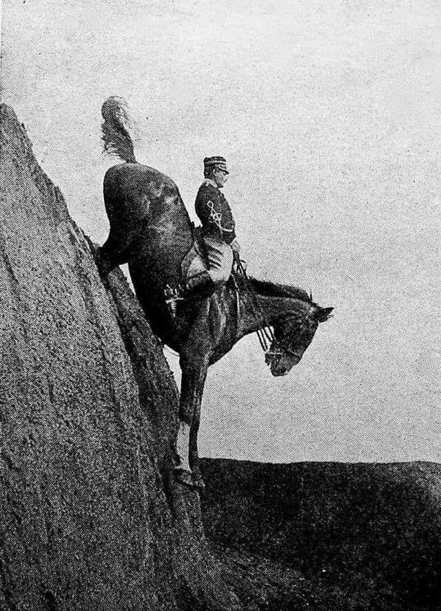 Со времён появления сбруи всадники ездили с длинными стременами, так было принято во всем мире. К чему это я? Сейчас объясню. В конце XIX века роль кавалерии немного изменилась. На поле боя появился многоствольный пулемёт Гатлинга и всадники стали представлять отличную мишень.