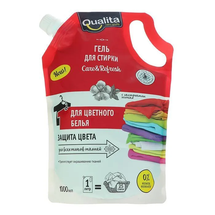 Гель для стирки, QUALITA, для стирки цветного белья, дой-пак