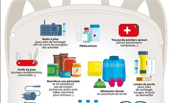 В него войдут советы о том, как создать «комплект для выживания» с предметами первой необходимости: шесть литров воды, консервы, батарейки, фонарик и основные медицинские принадлежности, такие как парацетамол и бинты.