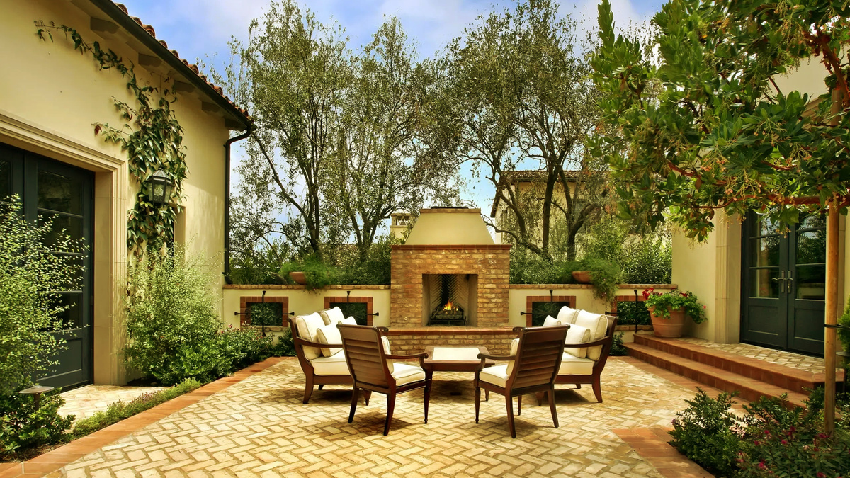 Для создания уюта, патио дополняют элементами декора: подушками, шторами, вазами, иногда устанавливают статуи и амфоры.