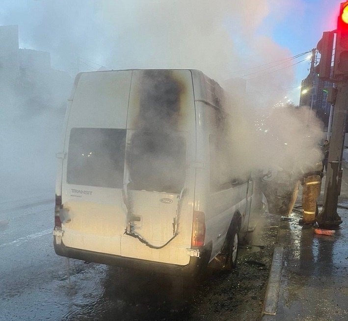 Инцидент произошел утром 20 марта: на улице Софьи Перовской в Уфе прямо в ходе движения загорелся автобус Форд Транзит. Прибывшие пожарные ликвидировали возгорание. Автобус получил значительные повреждения. Пострадавших нет, сообщает МЧС Башкортостана. Фото: МЧС РБ.