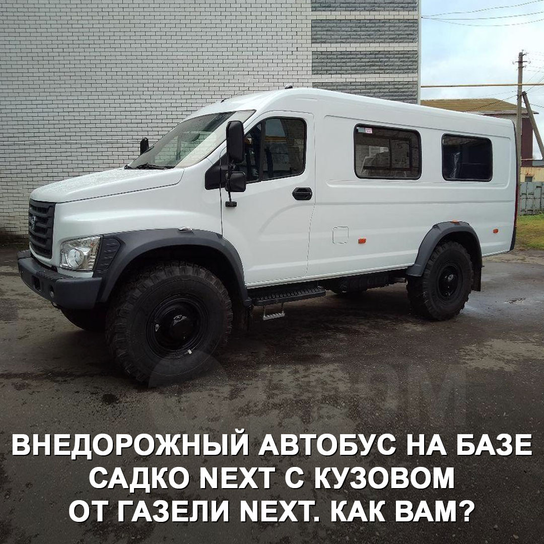 У дилеров ГАЗа появилась экзотика — внедорожный автобус на базе вездехода Садко Next с кузовом от ГАЗели Next. Выглядит это необычно 🤔