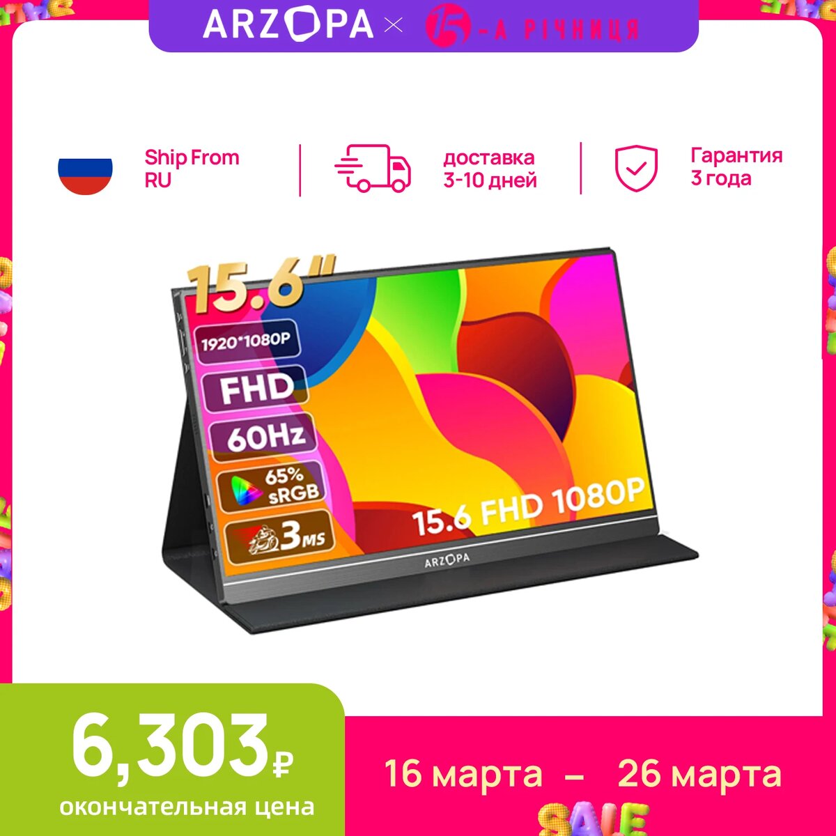 Портативный монитор Arzopa с диагональю 15,6 дюймов и разрешением FHD 1080P – это идеальное решение для тех, кто ценит высокое качество изображения в компактном формате. Благодаря технологии IPS, вы сможете наслаждаться яркими и насыщенными цветами, а широкие углы обзора позволят комфортно работать и играть на этом экране с любого ракурса. Монитор легко подключается к компьютерам, ноутбукам, Mac, игровым консолям Xbox и PS4 через порты mini-HDMI и USB, что делает его универсальным помощником для любых задач, будь то работа или развлечения.
