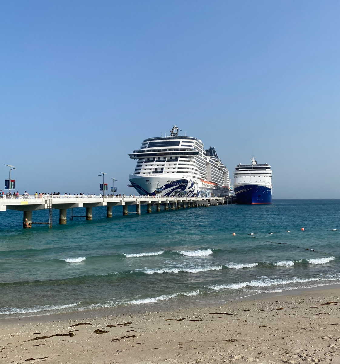 Наглядная разница между двумя лайнерами. Наблюдали эту картину на остров Сир-Бани-Яс 🚢⛴️.