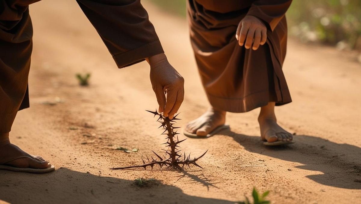 Притча «Богатый вор и бедный священнослужитель» из сатсанга Духовного Учителя Шри Пракаш Джи: «Жили два брата. Один из них был священнослужителем, другой – вором. Вор был богат, а священнослужитель – беден. Жена вора жила в роскоши и довольстве, а жене священнослужителя приходилось экономить на всём. Когда священнослужитель приходил домой, жена, недовольная им, говорила: – Почему ты так беден? Делай то же, что делает твой брат. Но священнослужитель отвечал: – Он поступает очень плохо, я так делать не буду. Но жена настаивала: – Может он и поступает плохо, но при этом его семья счастлива и ни в чём не нуждается. – Мне не нужно такое счастье, – каждый раз отвечал ей муж. Так всё и продолжалось: один брат днём и ночью совершал богослужение, а другой – свои тёмные дела. Однажды вечером, по дороге домой, священнослужителю в ногу воткнулась колючка, а вор нашёл золотую монету. Они встретились возле своих домов, расположенных рядом. Священнослужитель держался за пораненную ногу, а во