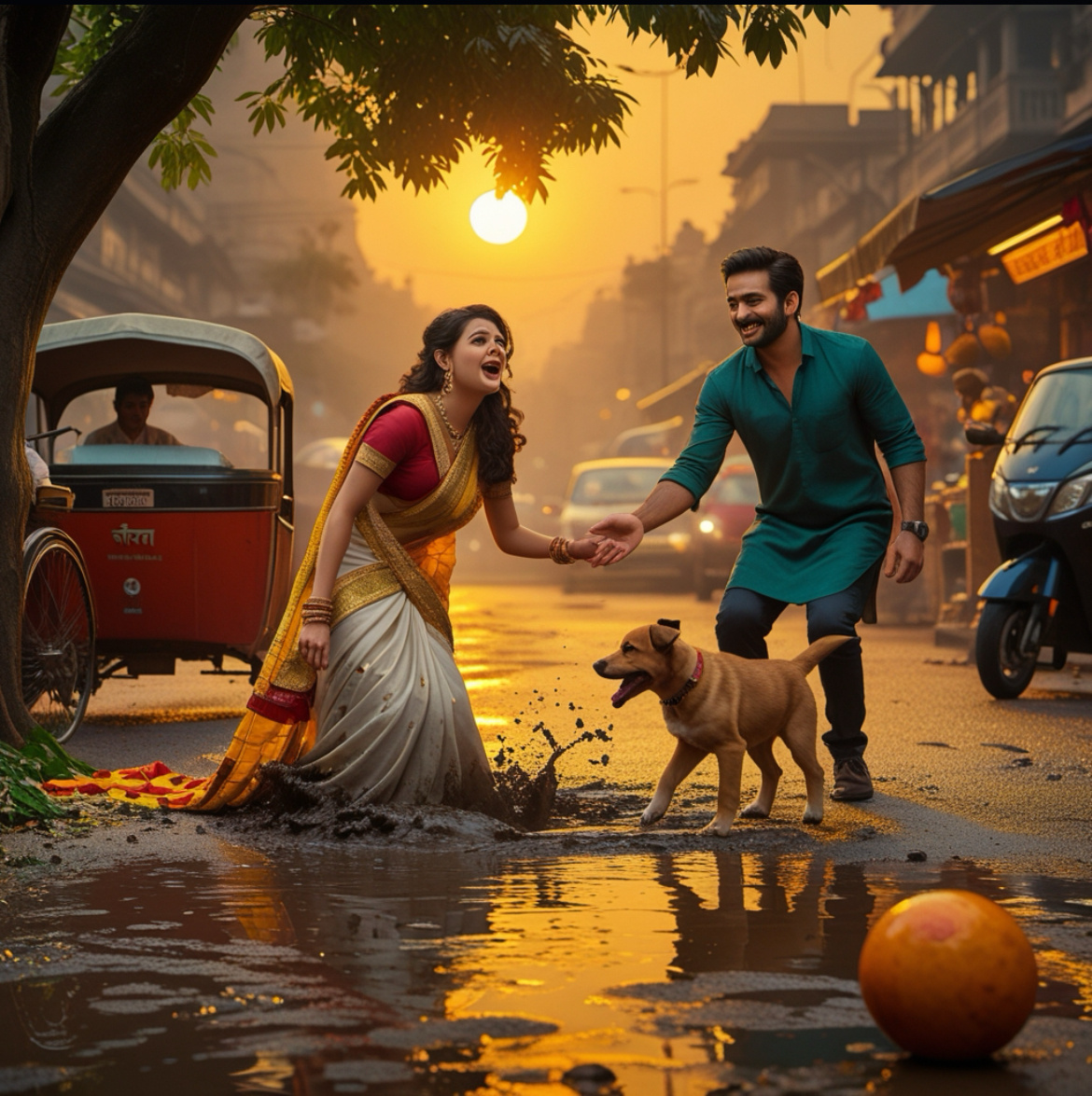 Радхика обернулась, но её невезение сыграло злую шутку: она поскользнулась и шлёпнулась в грязь, испортив белые шаровары. Перед ней стоял парень — высокий, с глазами как ночное небо и улыбкой, от которой сердце забилось быстрее.