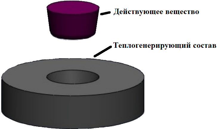«МК-Х» – это шашка теплогенерирующего состава, в центре которой расположено действующее вещество (см. эскиз). Действующее вещество – соединения йода. Порядок применения: