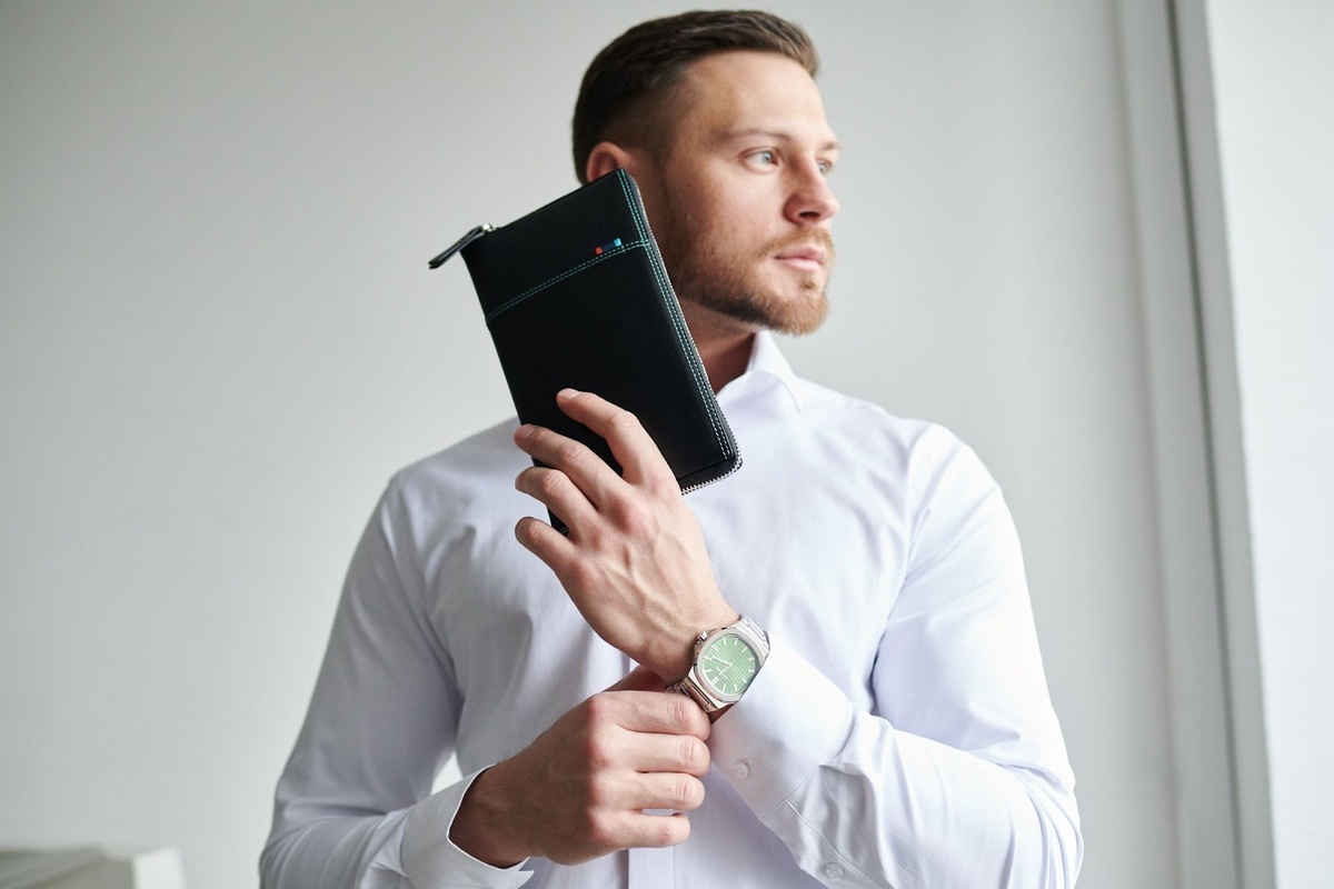 Мужской клатч — это небольшая сумка, в которую помещаются документы, телефон, кошелек и ключи. Его правильное ношение — один из самых частых вопросов этикета.