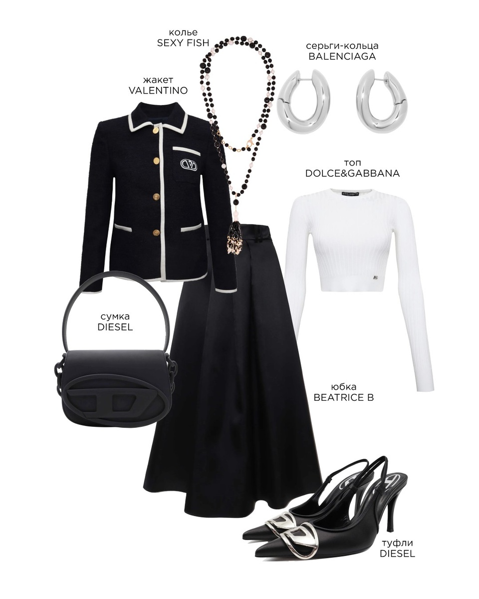 Весна — это время обновления, и ничто так не задает тон новому сезону, как юбка. В этом году она выходит за рамки привычного: минимализм сочетается с роскошью, классика — с авангардом, а длина играет ключевую роль в создании силуэта. Мы выбрали пять главных моделей, которые определяют стиль этой весны. 1. Юбка-миди с архитектурными драпировками Струящиеся миди в этом сезоне теряют излишнюю романтичность и становятся более графичными. Драпировки, асимметрия, жесткие складки — такие детали создают сложный силуэт и делают образ динамичным. Лучшие варианты — в приглушенных оттенках: графит, песочный, холодный шоколад. Носим с простыми топами и оверсайз-жакетами, чтобы подчеркнуть скульптурность. ✦ Как носить: с укороченным пиджаком и босоножками на архитектурном каблуке для офиса или с объемным свитером и массивными сапогами для повседневных выходов. Юбка, Топ, Лодочки, Сумка, Жакет, Серьги, Колье 2. Длинная юбка в стиле 90-х Макси-юбка с минималистичным кроем — абсолютный мастхэв сезона