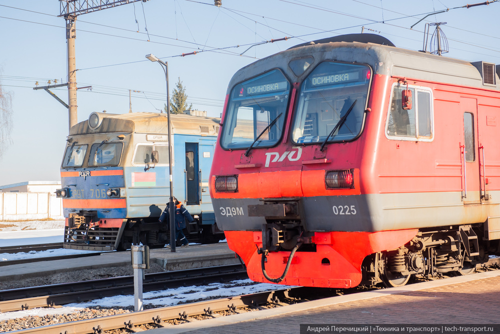 При поездке в другую страну обычно есть масса вариантов того, как добраться: самолёт, поезд, автомобиль... Автобус на худой конец. Но пересечь границу можно и менее очевидными способами — например, на обычной зеленой серо-красной электричке. А поедем мы на ней в Беларусь Наш путь начнётся с вокзала Смоленска. Если точнее, с пригородного вокзала - с 2007 года он отделен от вокзала для поездов дальнего следования, но находится совсем рядом И уже тут у нас появляется два варианта - сесть на электричку (либо ЭД9М, либо ЭД9Т) до станции Осиновка или на рельсовый автобус РА2 до станции Заольша. Обе конечные находятся в Витебской области. В целом, поездка на электричке до белорусских станций почти не отличается от поездки внутри России. Но некоторые нюансы всё же есть Мы сегодня поедем в Осиновку, так что садимся в ЭД9М В Заольшу же поедет РА2 Но поездка на дизеле в наши планы сегодня не входит, садимся в электричку Ехать до Осиновки примерно 2 часа 10 минут. До Заольши чуть дольше - примерно