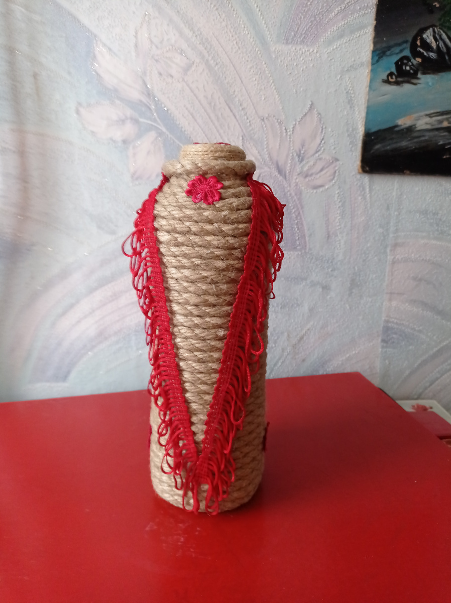 Вот такой яркий подарок я приготовила для своей старшей племянницы Наташеньке на День рождение. Вид подарка с другой стороны. Внутри изделия - бутылка из под сока. Она подойдет для хранения крупы... Или в сосуд можно насыпать орехи, семечки... Или на полку поставить для красоты... Изделие с крышкой. Можно использовать, как вазу для цветов... с длинными стеблями... Можно использовать, как денежную копилку... А когда отправлю подарок в Екатеринбург, где Наташа живет - не знаю. Дорогие мои девушки, вы тоже можете сделать подарок своими руками. ЖЕЛАНИЯ И УДАЧИ ВАМ В ЭТОМ ДЕЛЕ!