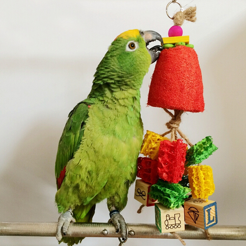 Фуражные игрушки. Пожалуй, самые важные, нужные и незаменимые игрушки для любого животного, в том числе и попугая. Это игрушки с большим или маленькими полостями, с крючками и замками, всевозможными задвижками и прочим, заполненные кормом, либо любимым лакомством вашего пернатого товарища. Они заставляют птицу добывать пищу, работать клювом и лапами, рыть, копать, крутить и открывать различные детали в этих игрушках. Занимаясь извлечением корма, попугай тратит много времени, сил и главное включает свою голову, думая, как добраться до заветной еды. Этот тип игрушек позволяет значительно разнообразить жизнь вашего питомца. Игрушки погрызухи Как следует из названия, они предназначены для того, что их грызли и жевали. В природе попугаи много времени проводят за этим занятием, отгрызая почки деревьев, разламывая орехи, отковыривая кусочки глины с берегов рек. Много времени они занимаются разрушением деревьев в период гнездования, создавая дупла для своих будущих гнезд. Поэтому немаловажно