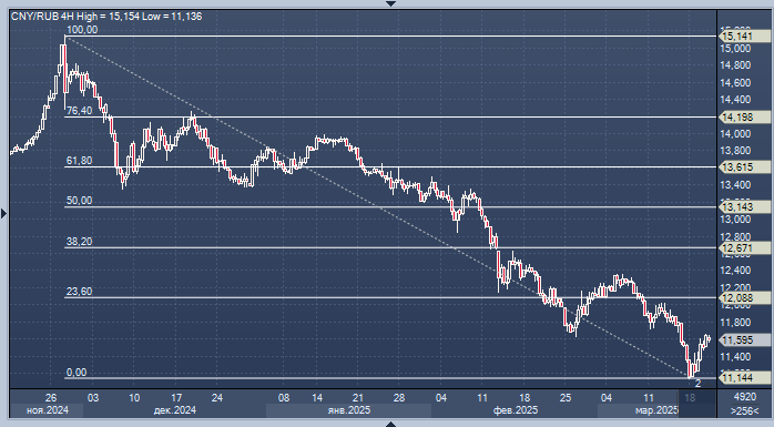 Российский рубль корректируется после ралли, вызванного переговорами между США и Россией Курс доллара к рублю расчётный, фьючерс, вечный фьючерс и межбанк. Курс евро к рублю расчётный, фьючерс, вечный фьючерс и межбанк. Курс юаня к рублю биржевой, фьючерс, вечный фьючерс и межбанк. В четверг российский рубль продолжил своё ослабление после значительного роста, который наблюдался в начале года в связи с надеждами на снижение геополитической напряжённости на фоне переговоров между Россией и США. К 09:20 по Гринвичу рубль подешевел на 0,4% по отношению к доллару на внебиржевом рынке, продолжив падение с предыдущей сессии, когда он потерял 2,8%, что стало его самым значительным дневным снижением с начала года. По отношению к китайскому юаню, который является наиболее торгуемой иностранной валютой в России, рубль упал на 1,1% до 11,62 на Московской фондовой бирже. Несмотря на это, рубль всё ещё вырос на 26% по отношению к доллару в этом году. «То, что мы наблюдаем сейчас, — это естественное