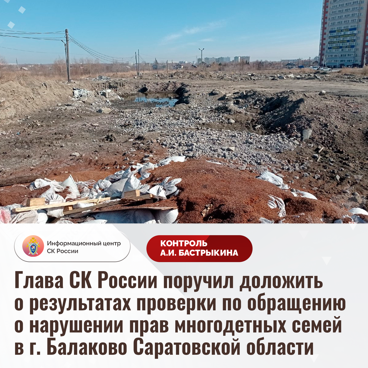 Глава СК России поручил доложить о результатах проверки по обращению о нарушении прав многодетных семей в г. Балаково Саратовской области