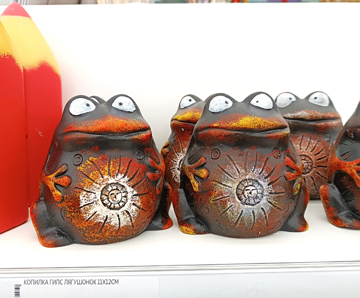 Спросите, зачем мне дом? А затем, что я страдаю хомякозом - тащу к себе в норку всякие мелочи, коробочки, шкатулочки, фигурки... И было бы еще что-то действительно ценное, коллекционное! Нет, обычная мишура))). Стараюсь себя сдерживать, но порой срываюсь и прикуплю пару бесполезных, но приятных душе вещиц. Мою страсть разделяет сын - он коллекционирует фигурки котиков, поэтому всегда можно купить нового красивого котенка и честно оправдать себя - это ж не мне, это ребенку! Вот потому и мечтаю о большом двухэтажном доме, где отвела бы себе комнату под музей для своих коллекций))) - котов сына и своих Баб Ёжек. Но в какой-то момент думаю, а может, и к лучшему, что нет у меня такой своей комнаты, а то бы при появлении свободной копеечки начала бы скупать всякую фигню... Лучшее лекарство от хомякоза - визуально насытиться вещами, насмотреться, сфотографировать их и... понять, что не так уж они тебе и нужны😁. Что я и попрактиковала на днях. В Ашане увидела полку с изумительными лягушками,