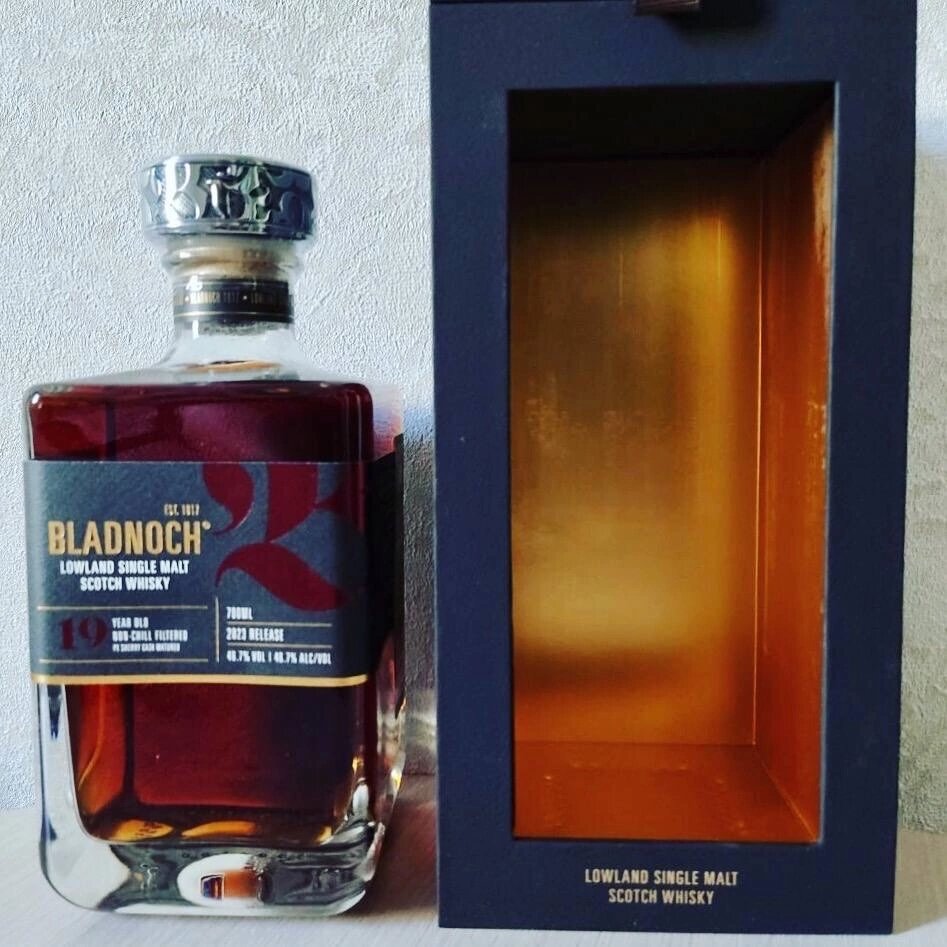 Добрый день! Продолжаем виски дегустации, на очереди Лоуленд. Bladnoch располагается на юго - западе Шотландского Лоуленда, на берегу реки Блэднок, давшей заводу 🏭 название. Завод был построен в 1817 году Томасом МакКлелландом. Винокурня неоднократно меняла своих хозяев и прекращала работу, как и многие винокурни Шотландии. С 1930 по 1948 год она была закрыта, потом выкуплена фирмой Inver House 🏠 Distillers, а в 1983 году продана фирме Arthur Bell&Sons, которая осуществила перезапуск торговой марки. В 1985 году владельцем завода стала компания United Distillers, которая в 1993 году превратила его в туристический центр. Но уже в 1994 году винокурню выкупил ирландец Реймонд Армстронг при условии, введëнном United Distillers, что объëм производства будет ограничен до 250 000 бутылок в год Блэднох 19 - новинка в ассортименте компании, односолодовый шотландский виски, выдержанный в бочках из - под хереса Педро Хименес в течение 19 лет и бутилированный без холодной фильтрации при крепост