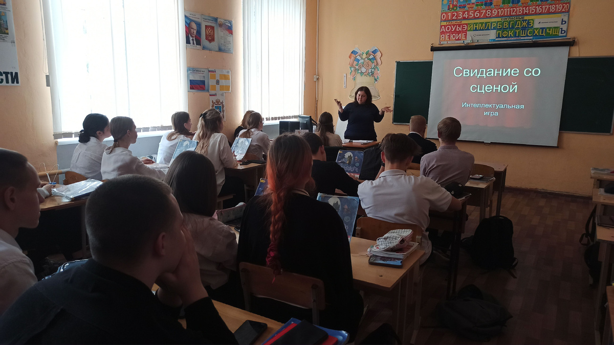 20 марта для учащихся МБОУ СОШ № 4 в рамках программы «Пушкинская карта» была проведена интеллектуальная игра «Свидание со сценой», посвященная Международному дню театра. Театр существовал во все времена и во всех уголках земли, но лишь в 1961 году был провозглашён Международный день театра, сплотивший представителей театральной общественности всего земного шара. Это не только праздник для театральных деятелей, но и хорошая возможность для зрителей приобщиться к прекрасному. В ходе мероприятия сотрудники библиотеки познакомили присутствующих с историей возникновения театра, рассказали о том, какие они бывают, и какое влияние театральное искусство оказывает на духовный мир человека. Игра была посвящена театру и всему что с ним связано. Она состояла из постепенно усложняющихся раундов: «Найди общее», «Секретные материалы», «Потерянное звено», «Мудрость не порок…», «Два в одном», «Пятый элемент», «Убери лишнее» и другие. Необходимо было с помощью вопросов ведущего, картинок на экране и св