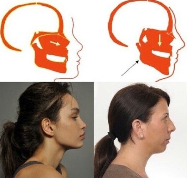 Если у вас не хватает высоты жевательных зубов, голова компенсирует это, вжимая шею и откидывая затылок назад. Это может происходить во время еды, а потом — даже в статике. В результате мозг создает устойчивый паттерн неправильного положения головы. Чтобы изменить эту привычку, нужно осознанно переучить процесс глотания.