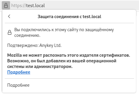 Для тестовой среды или в особых случаях может понадобиться выпустить сертификаты самостоятельно. Такие сертификаты не требуют привязки к корневым сертификатам, чтобы их выпустить, воспользуйтесь командой: sudo openssl req -x509 -nodes -days 365 -newkey rsa:2048 -keyout selfsigned.key -out selfsigned.crt Для кого-то на начальном этапе этого будет достаточно. Команда генерации корневого сертификата и ключа: openssl req -x509 -new -nodes -days 365 -newkey rsa:2048 -keyout rootCA.key -out rootCA.crt Проверить сертификат и ключ соответственно помогут команды ниже: openssl x509 -text -noout -verify -in rootCA.crt openssl rsa -in rootCA.key -check Чтобы проверить соответствие сертификата и ключа, достаточно сравнить их хэши: openssl x509 -noout -modulus -in rootCA.crt | openssl md5 && \ openssl rsa -noout -modulus -in rootCA.key | openssl md5 Для начала создадим x509v3_config: [req] distinguished_name = dn prompt = no req_extensions = req_ext [dn] CN="test.local" [req_ext] subjectAltName =