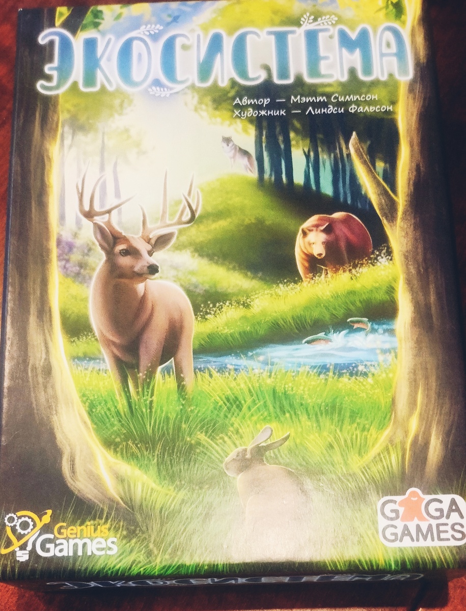 Всем привет! Сегодня поговорим про игру "Экосистема", доставшуюся нам в подарок на ГагаСанте. Не смотря на интесное описание на коробке, и в принципе простоту, руки до игры дошли только сейчас) Итак поехали! Распаковка На коробке заявлено: Раздаем игрокам памятки. Перемешиваем карты и каждому игроку раздаем по 10 карт (при игре вдвоем нейтральному игроку так же даём 10 карт), остальные карты откладываем до второго раунда. В начале игры каждый игрок смотрит карты на руке и выбирает одну из них, которую кладет в закрытую перед собой. Когда все выбрали карты, игроки одновременно переворачивают их и размещают в своих экосистемах в любом месте. Затем каждый игрок передает оставшиеся карты игроку слева.(нейтральный игрок сбрасывает одну карту в отдельную стопку). Игра продолжается до тех пор пока игроки не выложат в свои экосистемы 10 карт. Во втором раунде так же раздаем игрокам по 10 карт, но передаём карты уже игроку справа. В конце второго раунда считаем очки, согласно памятке. Наша