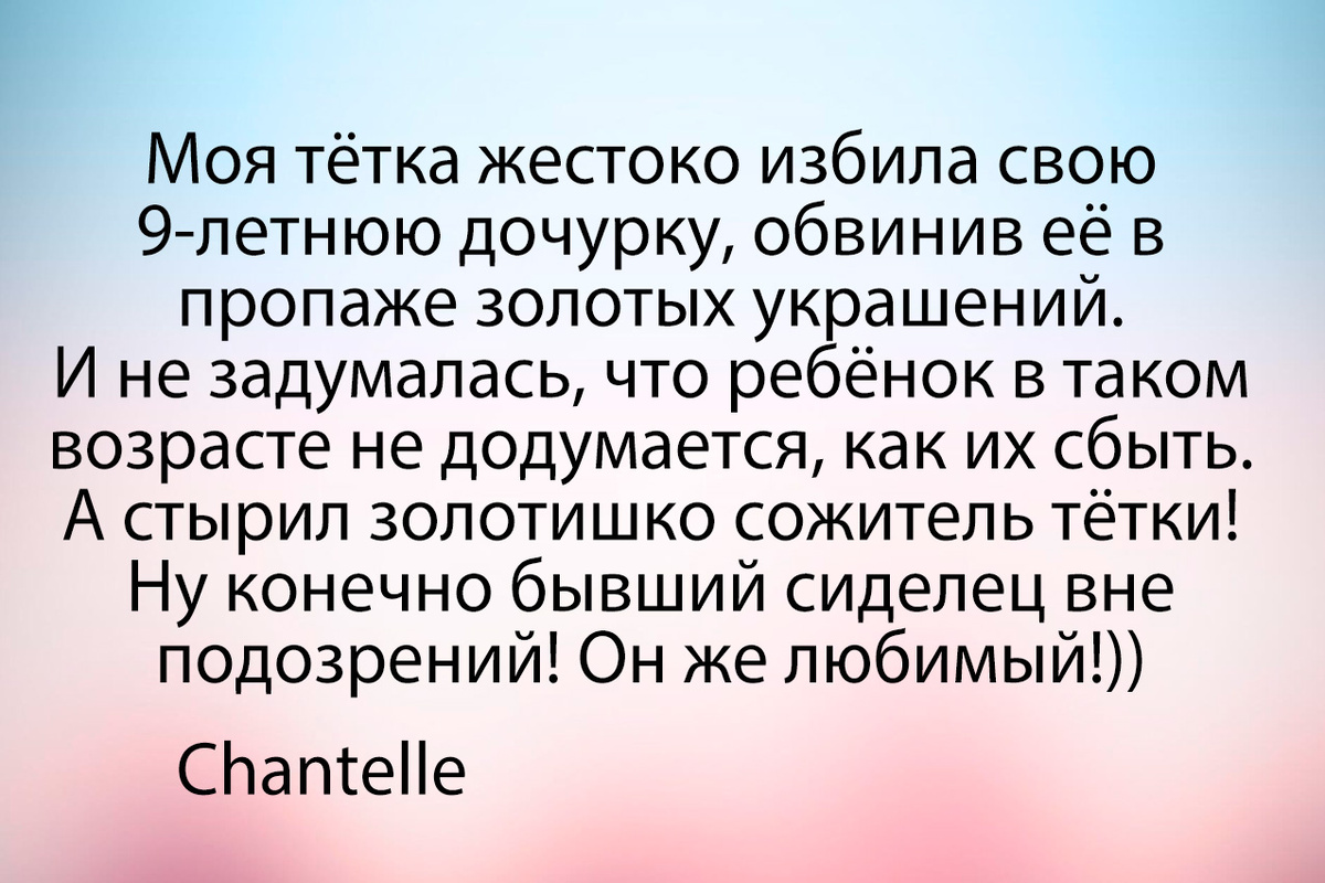 Мой муж, например, обвинил в пропаже моих украшений 10 летних друзей нашего сынишки. А то что его родный племянничек 16 лет из ломбардов не вылазит, часто бывает у нас дома, ни на какие мысли его не натолкнули. Chantelle