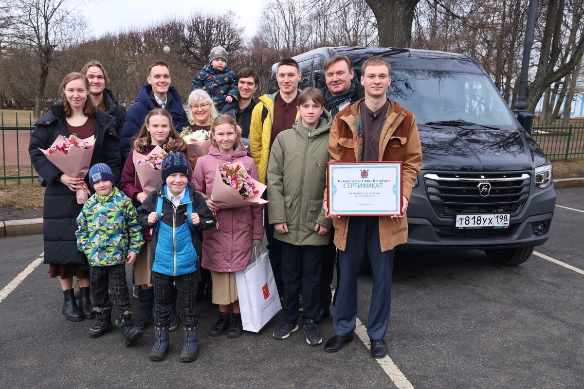 Александр Беглов вручил ключи от микроавтобуса петербургской многодетной семье Брянских