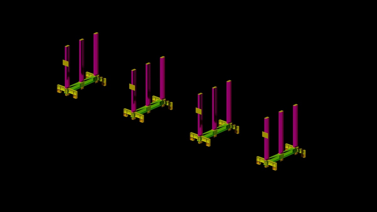 Стеллаж четырехсекционный для складирования трубопроводов общей массой 15 тонн и 30 тонн
