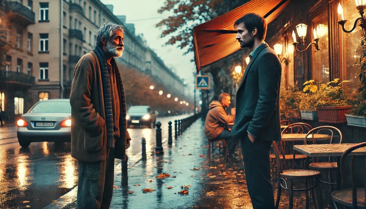 Я никогда не забуду тот день. Осень только вступила в свои права, на улице моросил мелкий дождь, забивая серостью всё вокруг. Холодный ветер пробирался под пальто, заставляя зябко поёжиться. Я спешил на работу, привычно погружённый в мысли о предстоящих задачах, когда у входа в офис заметил человека, которого не видел больше десяти лет. — Костя? — неуверенно спросил я, пристальнее всматриваясь в его лицо. Он медленно поднял голову, его глаза были уставшими, под ними залегли глубокие тени. Щёки осунулись, одежда выглядела поношенной и не по сезону лёгкой. — Привет, Димка, — голос хриплый, словно давно не пользовался. Он попытался улыбнуться, но улыбка получилась натянутой. Костя когда-то был моим лучшим другом. Мы вместе учились, вместе мечтали, но судьба разбросала нас в разные стороны. А потом... потом он пропал. — Ты как? Что с тобой случилось? — я невольно понизил голос. Костя грустно усмехнулся и потёр виски. — Долгая история. Есть время выпить кофе? Я не ел с утра. Я кивну