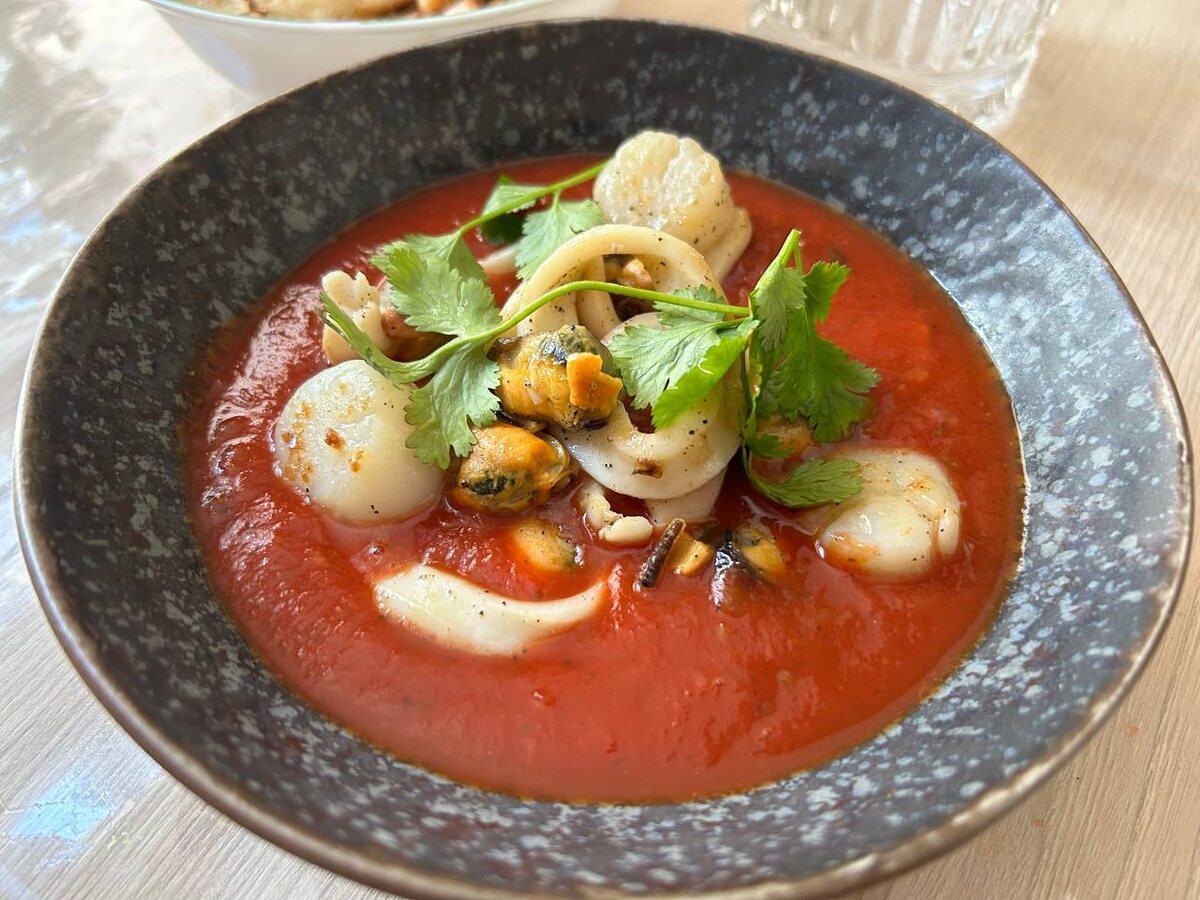 Горячий, ароматный, насыщенный – этот суп не оставит тебя равнодушным! 🔥 Представь: сладость спелых томатов, лёгкая кислинка вина, пряные травы и нежные морепродукты, которые тают во рту. 🦑🦐 Такой суп подают в лучших средиземноморских ресторанах, но ты легко приготовишь его дома! Почему стоит попробовать? Во-первых, это невероятно вкусно! Во-вторых, суп лёгкий, но питательный, а ещё он отлично согревает и дарит атмосферу уютного ужина. Ну и в-третьих, гренки из чиабатты с хрустящей корочкой – идеальное дополнение, которое делает блюдо ещё аппетитнее. 😋 📌 Подпишись, чтобы не пропускать ещё больше крутых рецептов! 1️⃣ Ароматная основа
