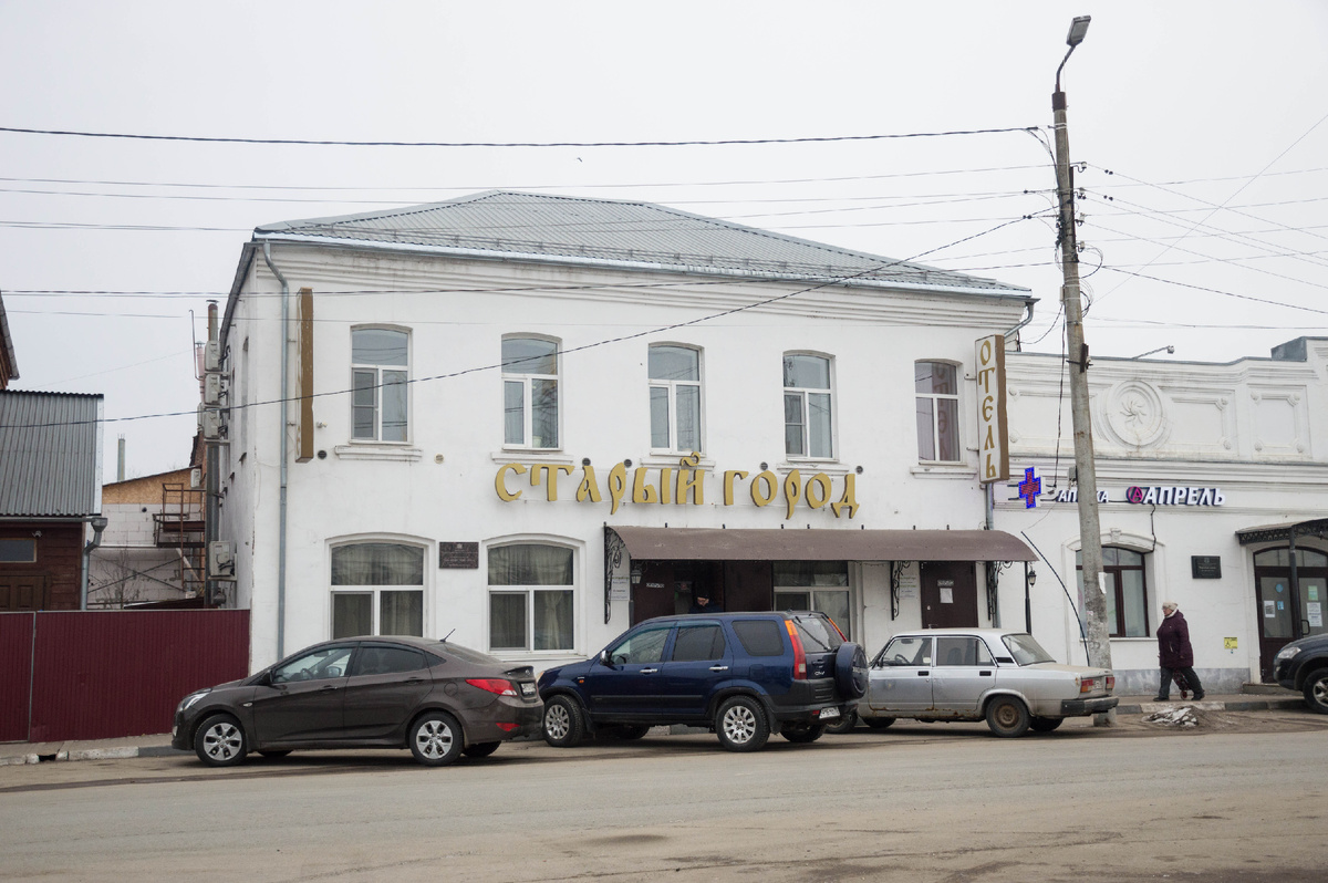Когда я собиралась в Судогду, друзья меня спрашивали, а где я буду жить? Жить я собиралась у знакомых, но вопрос был интересный, поэтому задала задачку Яндекс-картам. Итак, единственная гостиница в Судогде - "Старый город", находится напротив Екатерининского собора. Снаружи выглядит как на фото ниже, внутри вид неизвестен, я не заходила. Скажу только, что отельчик небольшой.