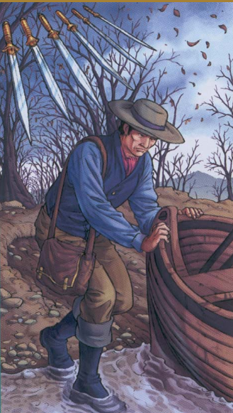 Для расклада на четверг беру колоду "Таро Колесо года", так как сегодня в 12:01 по московскому времени наступило весеннее равноденствие. Вытаскиваю младший аркан - "6 Мечей". Аркан "6 Мечей". "Таро Колесо года". Шестерка Мечей активно посещала расклад (ссылка на подборку - в конце статьи). В толковнике к колоде (МБК) указана следующая трактовка: Морское путешествие. Страх перед переменами места, вынужденное путешествие к неопределенным берегам, изгнание. Желаю удачного дня!