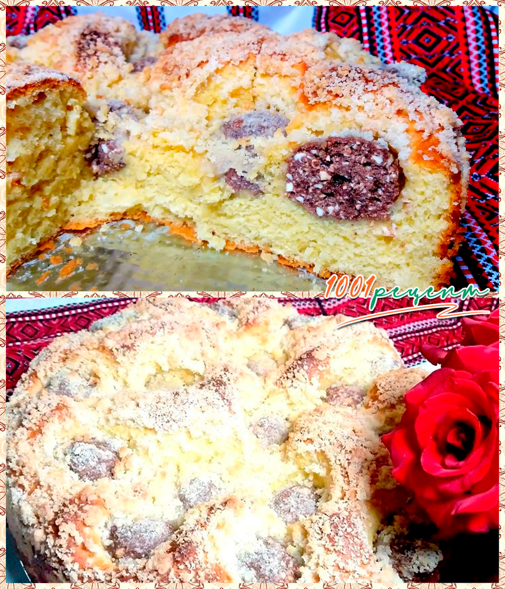 1️⃣1️⃣Сверху все засыпаем крошкой. Накрываем еще раз полотенцем и даем пирогу «отдохнуть» минут 10.