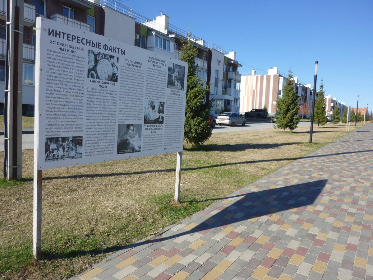 Всем привет. Сегодня выдался солнечный, хотя и прохладный пока (+8) мартовский денёк. Отправились прогуляться в другую сторону от вчерашнего маршрута. Здесь вдоль аллеи ещё в 2019 году поставили информационные стенды, где можно прочитать разные интересные факты. Правда, стенды уже немного выцвели. Данный проект был реализован при поддержке микрорайона "Долина", 55-й школы, Волгоградского госуниверситета и "Сбербанка". Остановившись возле такого стенда во время прогулки, можно узнать, к примеру, факты из истории поваренных книг, о самых сложных часах, о том, кто придумал скворечник, о традициях умывания, об иголке и напёрстке... Совместить, так сказать, приятное с полезным. ) На стендах представлены материалы из разных областей знаний. Информация так или иначе, хотя бы частично, связана с Волгоградской областью. Так, есть стенд о праве, где рассказывается и о Сарепте (сейчас там музей). Есть познавательный стенд по математике и информатике. Стенд "Информационная безопасность". "Физика и