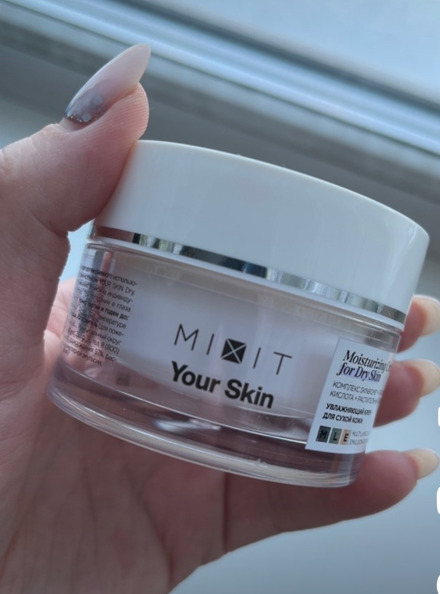 MIXIT Увлажняющий крем для лица YOUR SKIN для сухой кожи с гиалуроновой кислотой и маслом ши (50 мл) В условиях современного мира, где стресс, изменения климата и агрессивные факторы окружающей среды могут негативно сказаться на состоянии кожи, важность качественного увлажнения становится как никогда актуальной. MIXIT представляет свой увлажняющий крем для лица YOUR SKIN, специально разработанный для сухой кожи, который сочетает в себе мощные компоненты для глубокого увлажнения и питания. Основные компоненты 1. Гиалуроновая кислота: Это ключевой ингредиент в формуле крема, известный своими увлажняющими свойствами. Гиалуроновая кислота может удерживать влагу в коже до 1000 раз больше своего веса, что помогает поддерживать оптимальный уровень гидратации. Она также способствует улучшению упругости и эластичности кожи. 2. Масло ши: Это натуральный ингредиент, богатый жирными кислотами и витаминами, который активно питает и смягчает кожу. Масло ши создает защитный барьер, предотвращающий