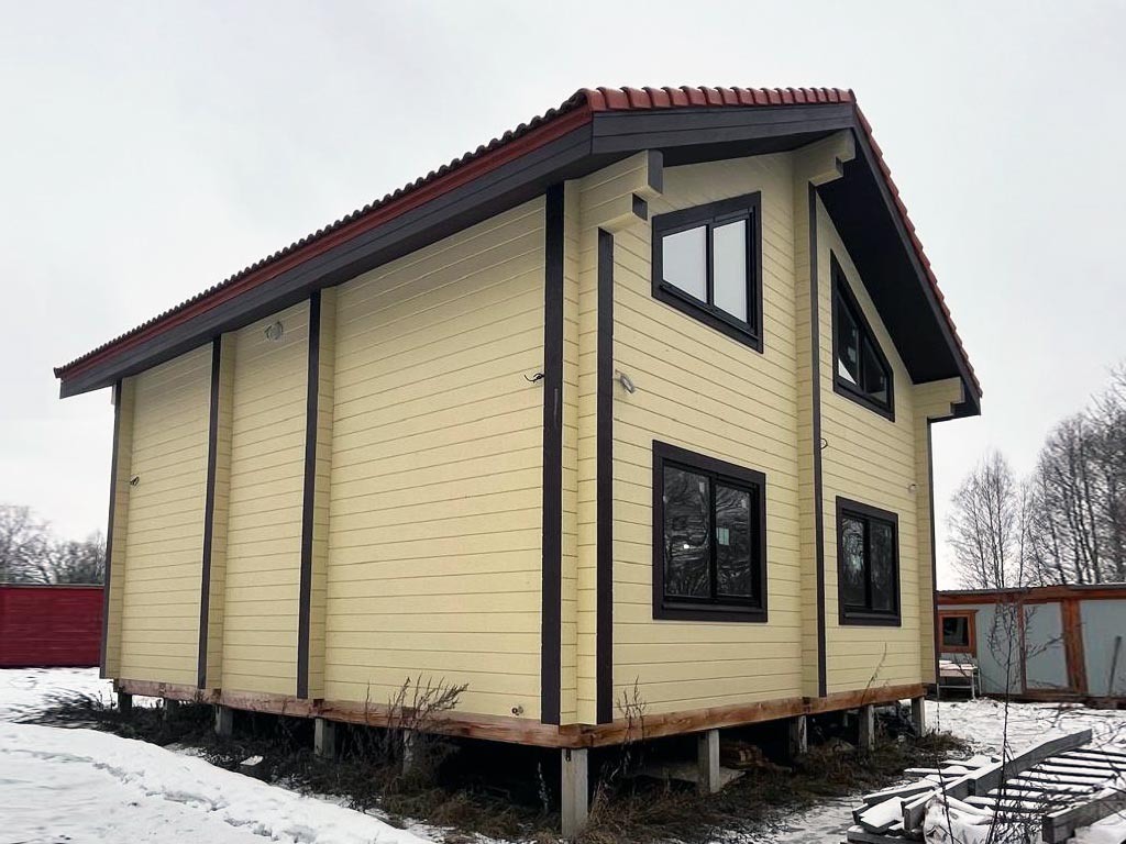 Этапы работ: Полная внутренняя отделка дома, инженерные сети. Утепление пола первого этажа, полусухая стяжка. Монтаж каркасных перегородок и шумоизоляция, покраска брусовых стен. Внутренняя покраска, монтаж потолочного покрытия, напольного покрытия. Изготовление и монтаж наружных наличников.