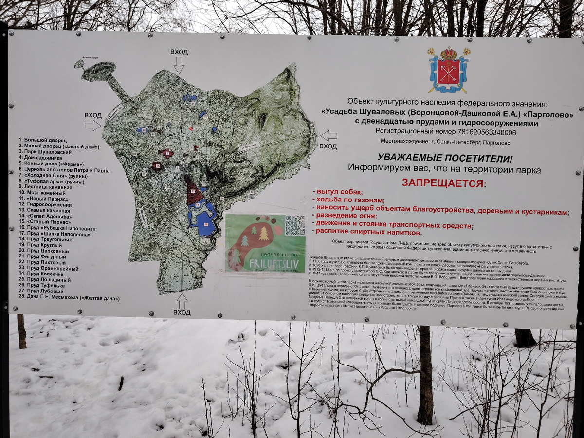 📜Шуваловы владели землями Парголовской мызы после того, как Петру Ивановичу был пожалован титул графа и до смерти в 1903 году князя Воронцова-Шувалова, последнего из младшей ветви рода. После этого земли унаследовал муж его сестры Елизаветы, граф Илларион Иванович Воронцов-Дашков. На тот момент размеры парка составляли 5799 десятин.