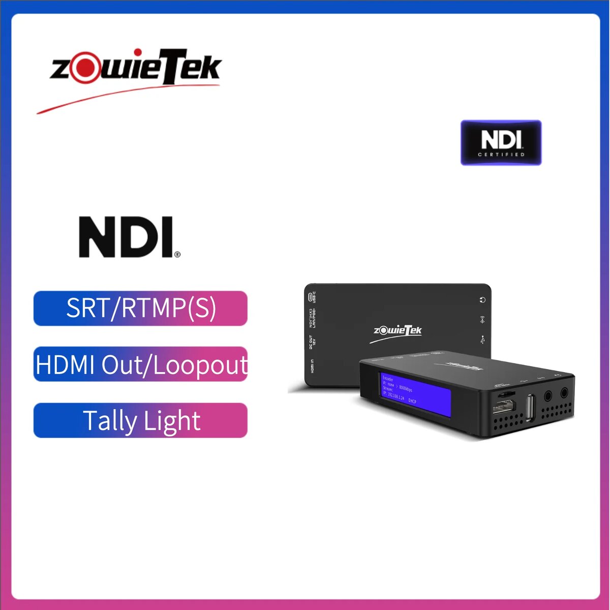Видеокодердекодер 4K NDI HDMI ZowieBox от бренда Zowietek — это идеальное решение для профессионалов в области видеопроизводства и стриминга. Устройство поддерживает высококачественную передачу видео в 4K и предоставляет возможность работы с разнообразными протоколами передачи, такими как SRT и RTMP(S). Благодаря входам и выходам UVC, вы можете без труда захватывать видеопоток и выводить его на разные платформы, включая YouTube и Facebook, что делает его незаменимым инструментом для стримеров и видеографов.
