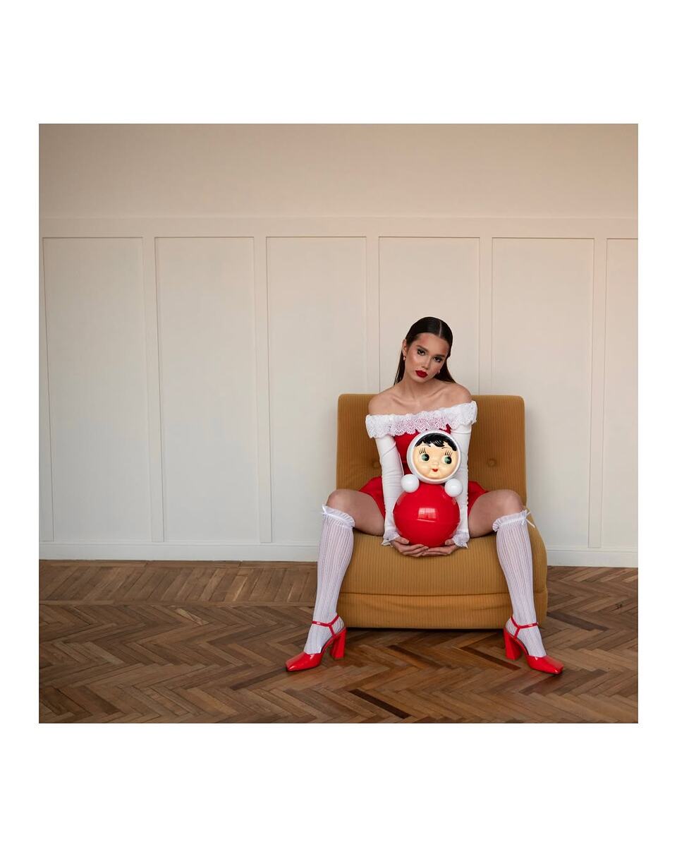 Харизматичная фотосессия красивой девушки с неваляшкой.