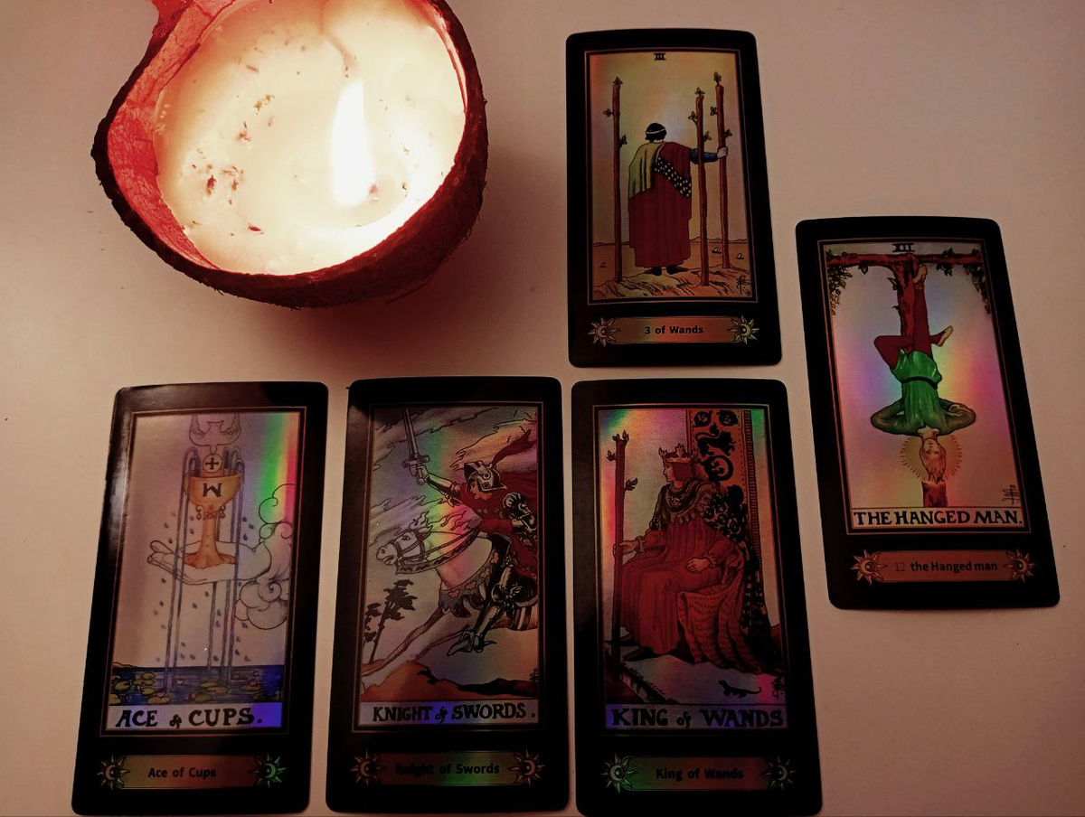 Дорогие мои, ночь — это время, когда маски спадают, а душа говорит правду. Сегодня я зажёг свечу с ароматом кокоса и раскинул карты Таро, чтобы заглянуть в его мысли — те, что приходят к нему в тишине, когда мир засыпает. Вопрос, который я задал колоде, звучит так: «О чём он думает по ночам, глядя в темноту? Что занимает его разум, когда он вспоминает тебя?» И карты ответили: Туз кубков, Рыцарь мечей, Тройка жезлов, Король жезлов, Повешенный. Это не просто расклад — это путешествие по его душе, полное страсти, порывов и теней. Давайте разберём, что шепчут звёзды и карты.