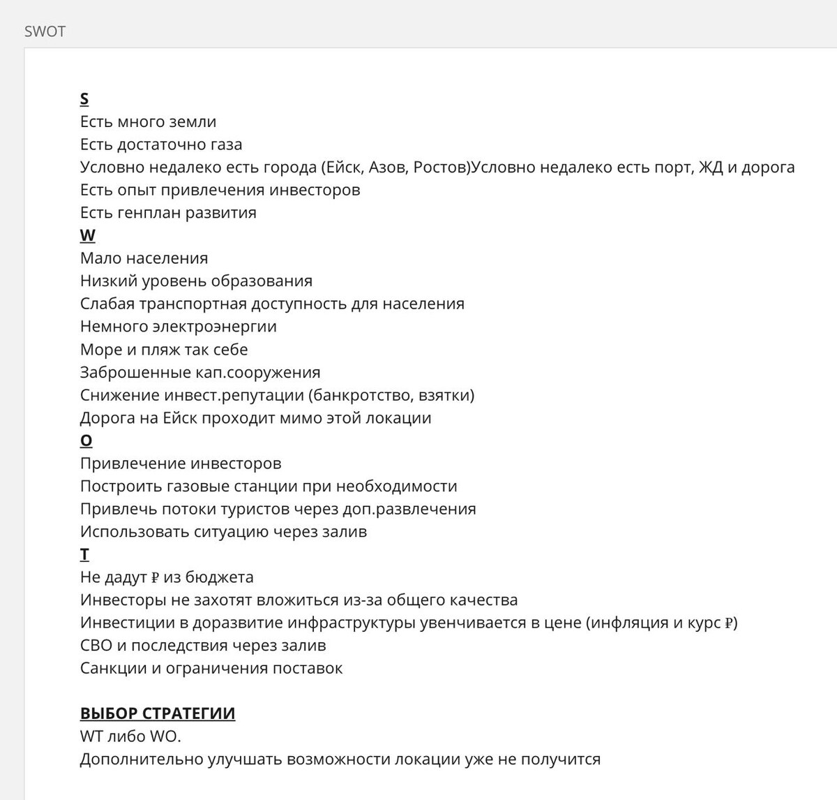 Итак, у нас на входе был кейс с депрессивной территорией, неприкаянным населением, некрасивой историей с обиженными инвесторами и уголовным преследованием, умирающей инфраструктурой и закопанными в песок деньгами. На всё на это висит запрос: Предложите варианты оптимального использования с учётом возможности внесения изменений по её использования в градостроительную документацию.