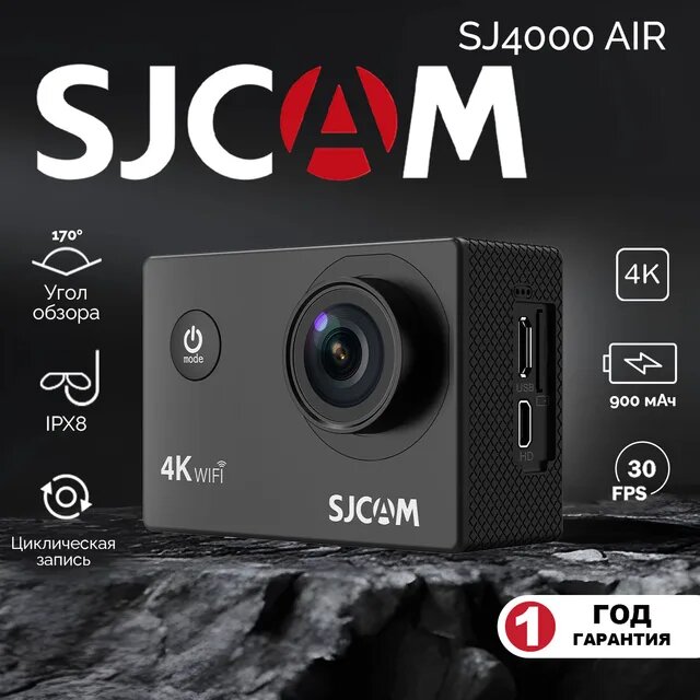 1. ⭐ Экшн камера SJCam SJ4000 Air черная с креплением, водонепроницаемая 4K Ultra HD