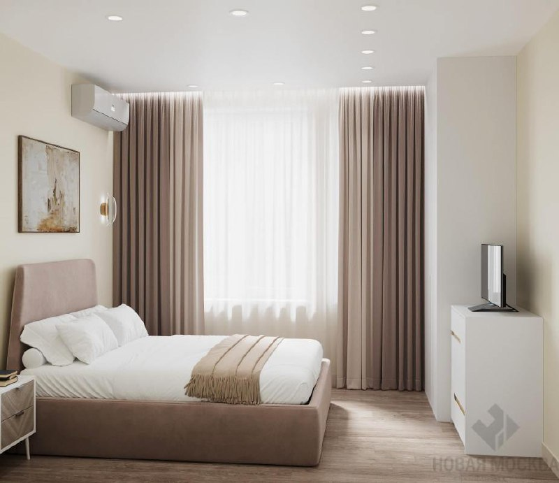 Лаконичный и уютный интерьер в десертных оттенках создан для молодой семейной пары командой СК «Новая Москва» в жилом районе «Южные сады». Квартира была куплена со свободной планировкой. На площади 66,5 кв. м размещены прихожая с гардеробной, ванная и туалет, кабинет, две спальни и кухню-гостиную. Для интерьера выбрана мягкая цветовая гамма: стены оттенков ванили, какао, халвы и сливок сочетаются с мебелью и текстилем светлых и приглушенных тонов. Подчеркнуто светлыми сделаны кабинет и утепленная лоджия с дополнительным рабочим местом. Хозяйка квартиры ведет блог на тему музыки, хозяин тоже нередко работает из дома. Скромный метраж прихожей визуально скорректирован единым оттенком стен и входной двери. Проем в гардеробную закрыт портьерой: тканевая завеса эффектно выглядит и экономит пространство. В нише нашлось место для пуфа, а напротив удалось разместить подвесной комод для мелочей. Санузел оставлен раздельным, но оформлен одинаковыми отделочными материалами. Кухня-гостиная зони